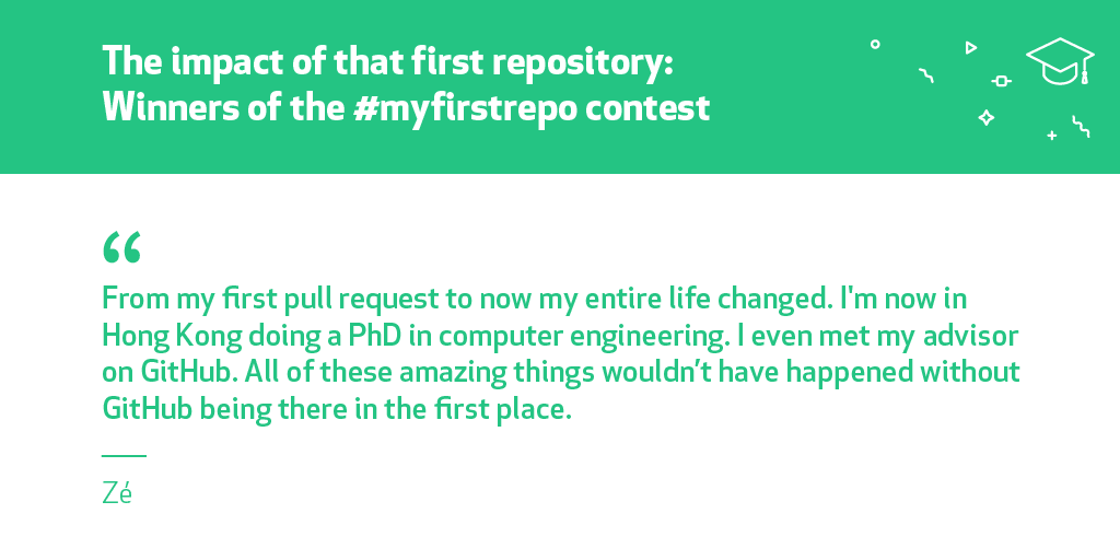 This fall we asked you to share the story of your first repository in our #myfirstrepo contest. With over 500 entries, your stories ranged from the inspirational—finding a gig at NASA through pull requests—to distant memories of getting started in the early days of GitHub.