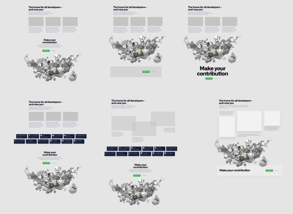 Developers interact with GitHub in many ways: writing code, maintaining projects, updating dependencies, reviewing pull requests, working on the go, and so much more. Our homepage needed to speak honestly and directly to the many roles developers play while showcasing the real experience of using GitHub. This blog post provides a behind the scenes look at the design, and the process we used to get there. Spoiler alert: we used GitHub heavily.