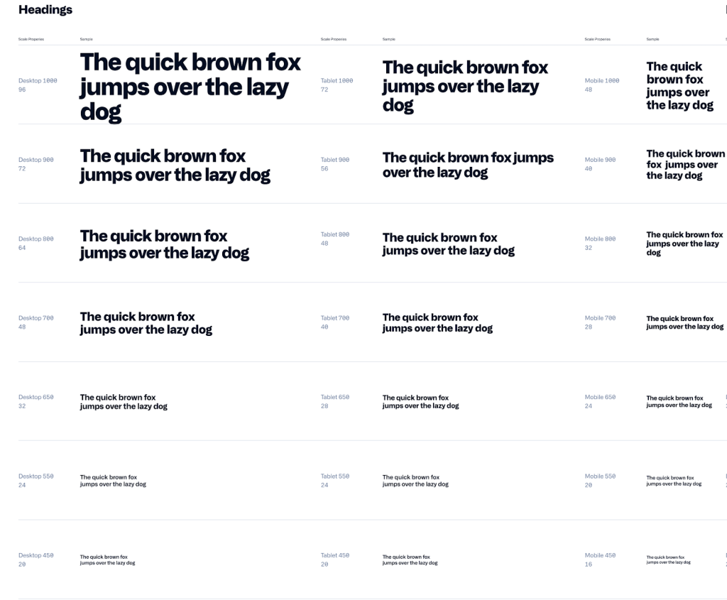 We chose Alliance due to its wide variety of weights and stylistic variants that lend itself well to legibility and flexibility in branding. Here’s a sneak peek of some of the work going into our typescale system.