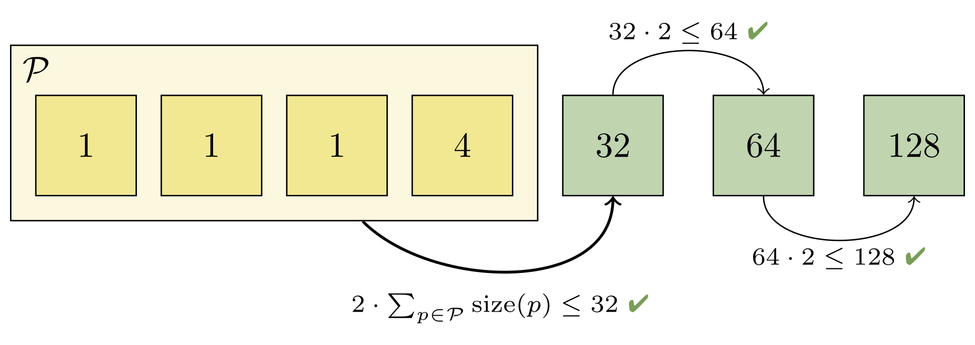 To do that, Git learned a new “geometric” repacking strategy. The idea is to determine a (small-ish) set of packs which could be combined together so that the remaining packs form a geometric progression based on object size. In other words, if the smallest pack has N objects, then the next-largest pack would have at least 2N objects, and so on, doubling (or growing by an arbitrary constant) at each step along the way.