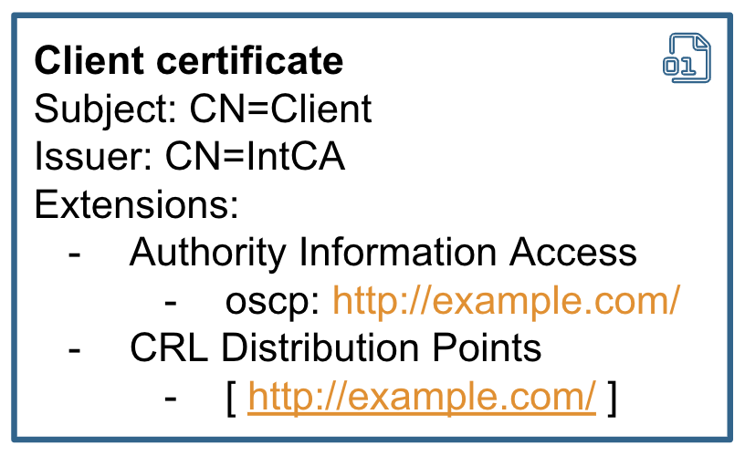 Looking at it from the hackers point of view, I think it’s incredible that the location of the revocation server can be taken from the certificate. So, if the application takes URLs relying on AIA or CRLDP extension to make a revocation check, it can be abused for SSRF attacks.