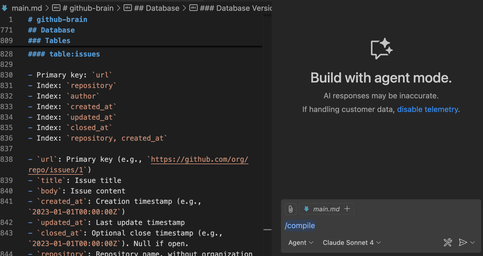 For my latest pet project — GitHub Brain MCP Server — I tried exactly that by writing the app code in Markdown and letting GitHub Copilot compile it into actual Go code. As a result, I rarely edit or view the app’s Go code directly.