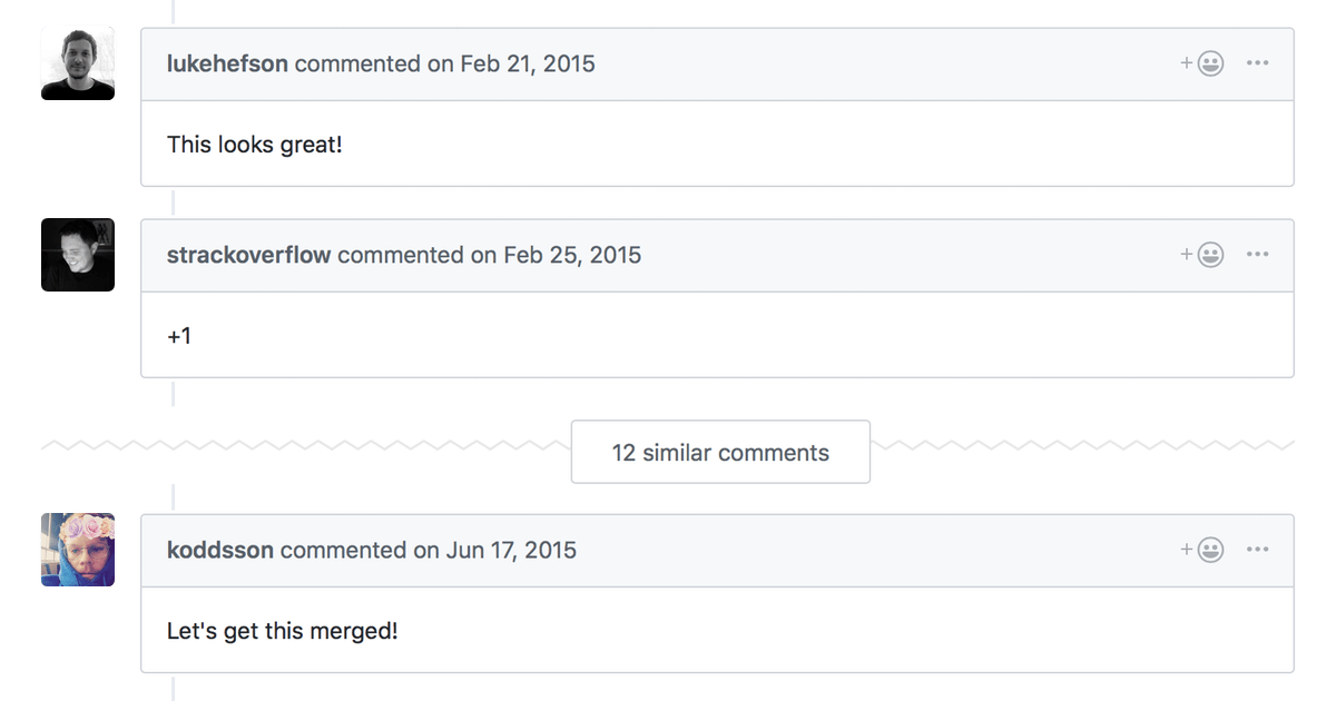 All consecutive duplicate comments in discussion threads are now hidden by default. This means that threads with numerous, duplicate emoji or +1s will now become shorter to read.