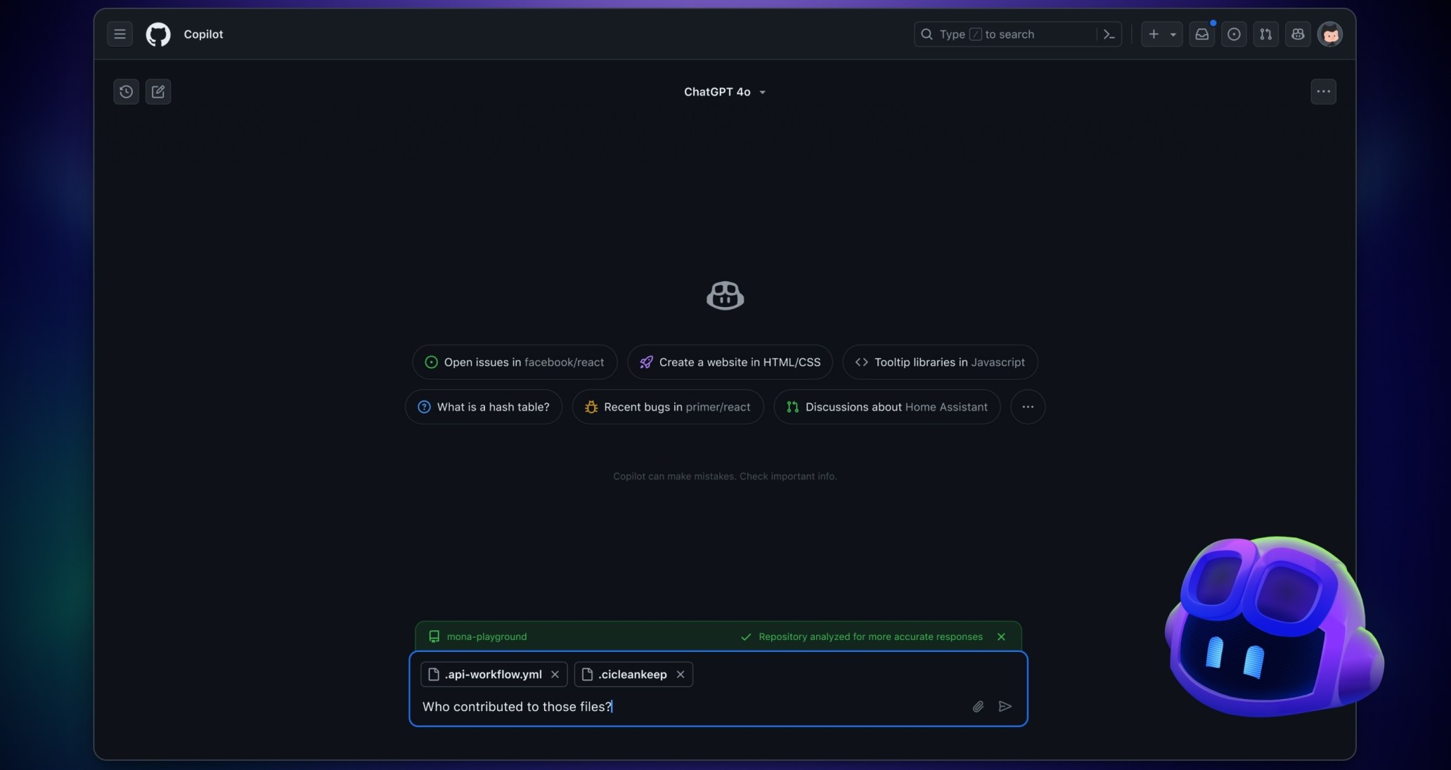 We’ve enhanced the fullscreen Copilot chat experience on github.com/copilot with a streamlined UI and an even easier way to handle context: