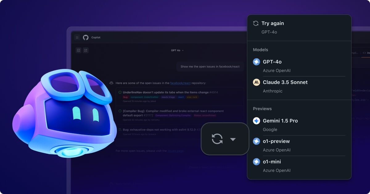 You can now easily regenerate Copilot responses using a different model. Simply click the retry button underneath Copilot’s response. Copilot will process the same prompt by your chosen model while maintaining all previous conversation context. You can also view previous responses and compare model output.