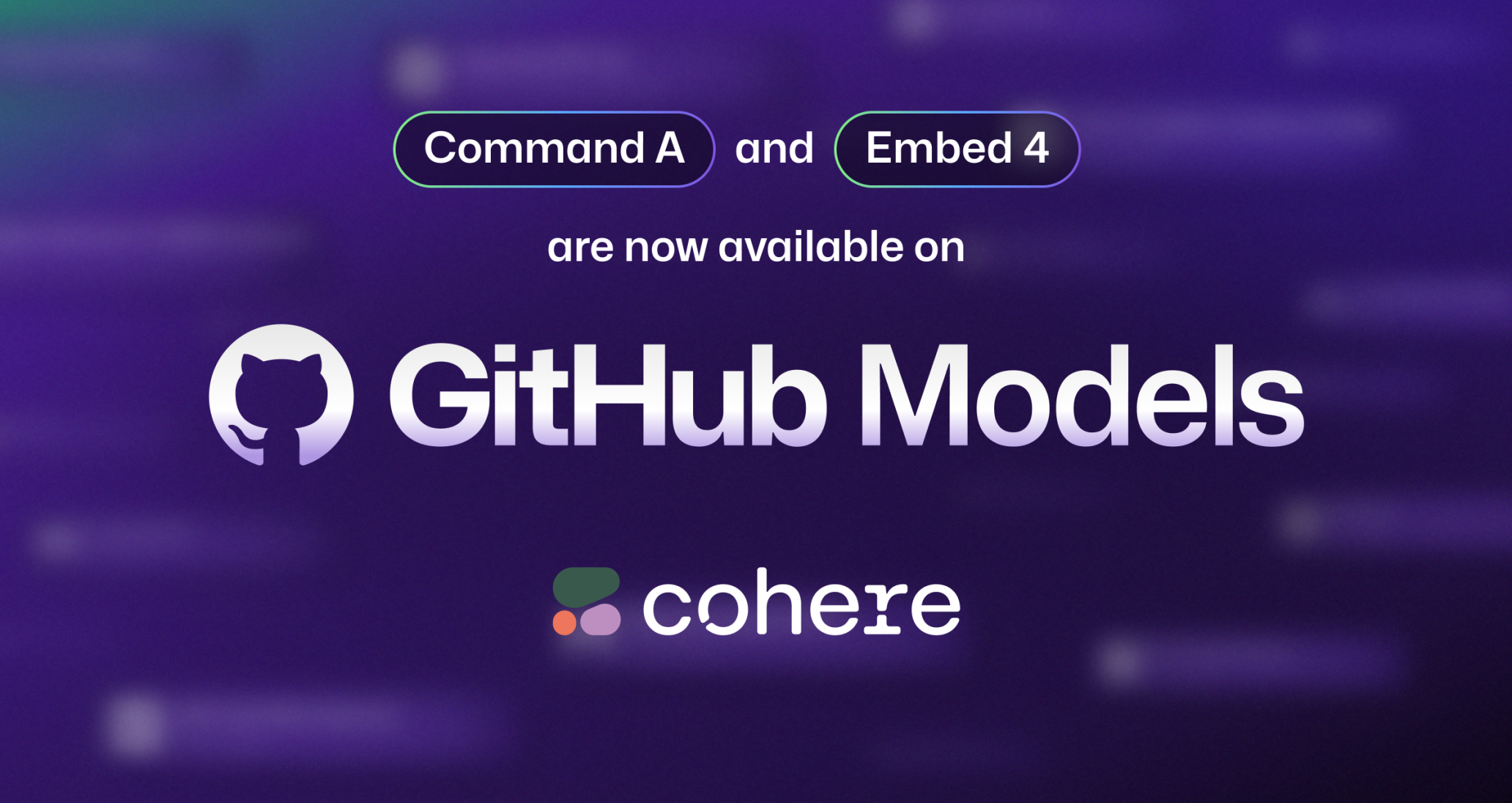 The latest AI models from Cohere, Command A and Embed 4, are now available on GitHub Models.
