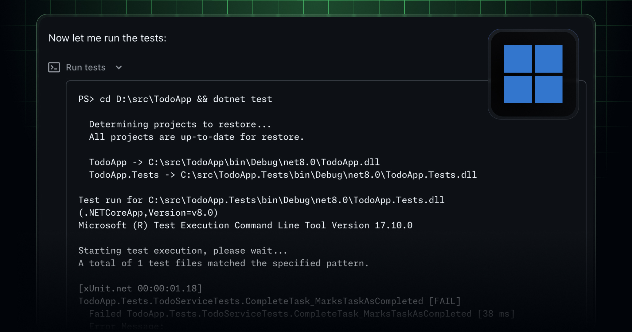 With a working development environment, Copilot can ensure your project builds and your automated tests and linter pass, so you get a green pull request on the first try.