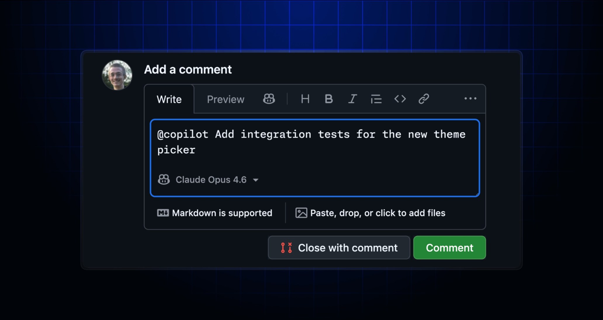 Now you can pick a model when mentioning @copilot. After adding the mention, a model picker will appear in the bottom-left of the comment box, allowing you to select a model from Copilot coding agent’s supported models.