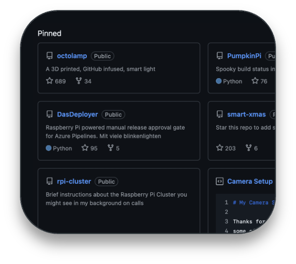 Make your “About” section shine with links to talks, blogs, and projects.