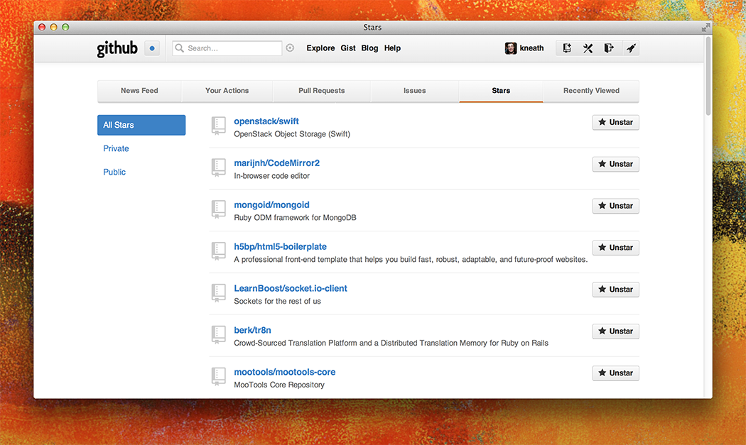 Stars are a new way to keep track of repositories that you find interesting. Any repositories you were previously watching can now be found on your stars page.
