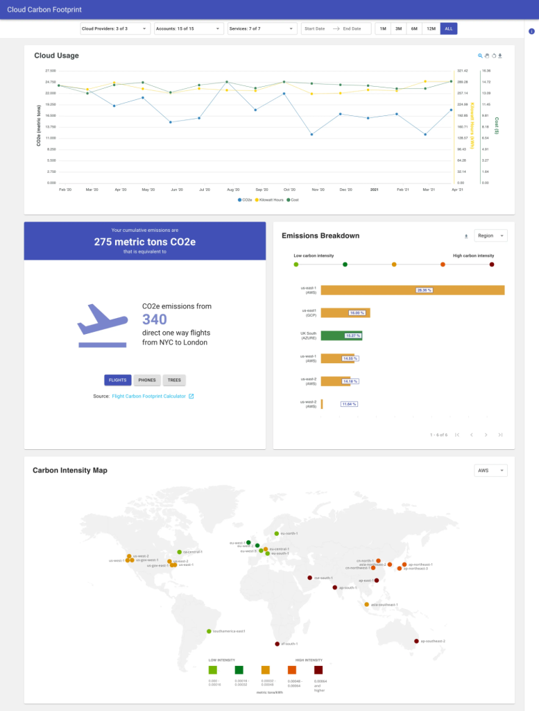 A tool to estimate energy use (kilowatt-hours) and carbon emissions (metric tons CO2e) from public cloud usage.