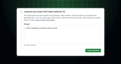 When creating a repository, you can now use Copilot coding agent to kickstart your work. On the “New repository” page, enter your prompt in the new Prompt field. After the…
